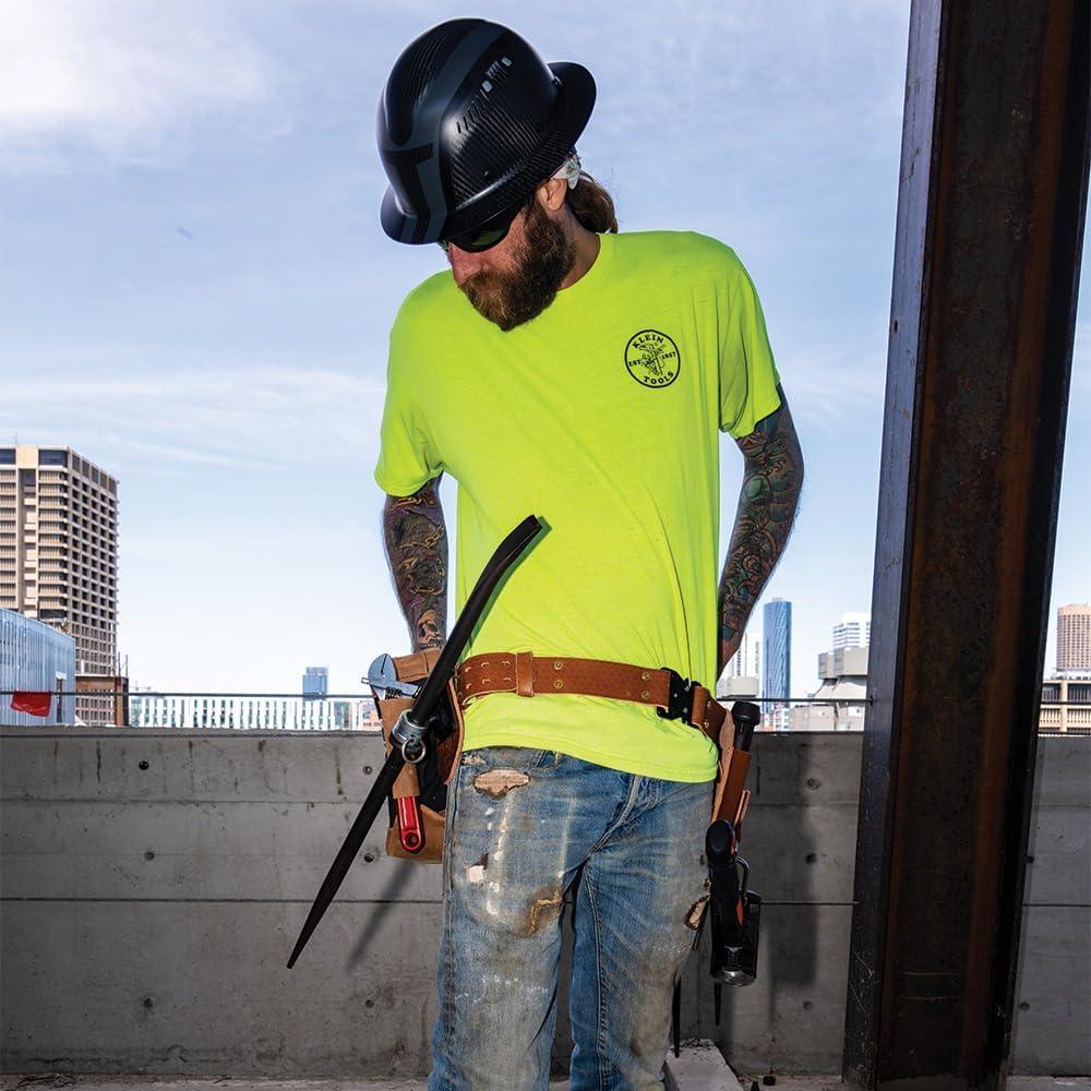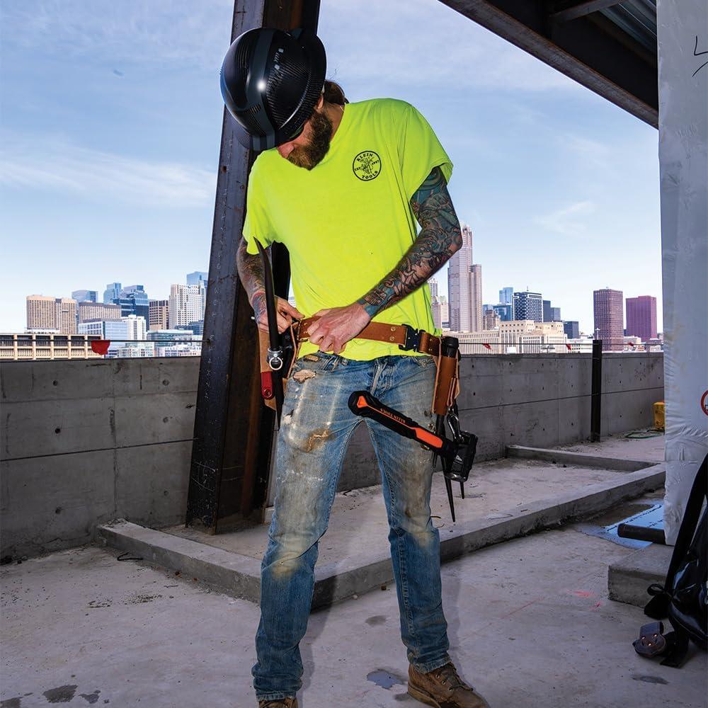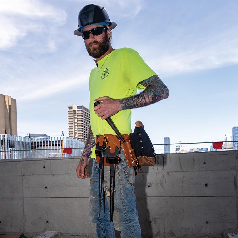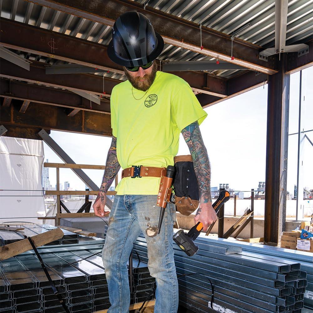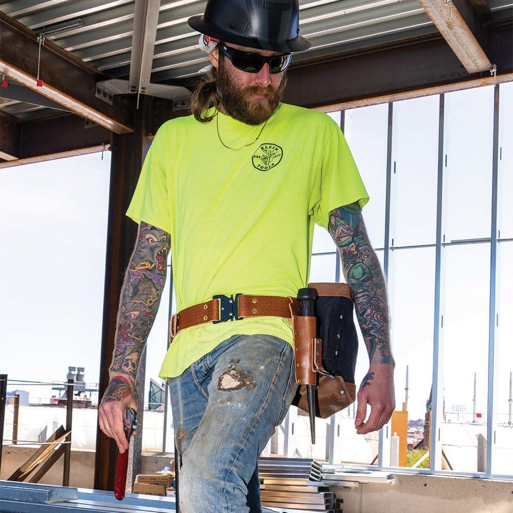 Klein Tools' Hybrid Leather and Flame-Resistant Bolt Bag ensures durability and convenience for trade professionals. Featuring a snap hinge rim for effortless tool access and secure closure, reinforced rim and bottom to endure daily use, and strategically placed straps with tunnel loops ensuring a snug fit around your harness. Manufactured in the USA with global components and certified to meet NFPA-701 flame-resistant standards for lasting performance in demanding work environments. For more than 160 years, Klein Tools has manufactured premium-quality, professional-grade hand tools that deliver the performance, durability and precision needed to get the job done right. Our family of engineers, workers and craftsman continue to put six generations of expertise into every tool we create by using only the highest quality materials, superior workmanship, and keeping manufacturing as close to home as we can. Klein isn't just the name of our company, it's also our family name. And since we're an American company that's family-owned and family-run, you know you can count on us to be here tomorrow. Klein Tools doesn't just make great products, we make great products that stand up to the demands of the professionals who use them every day … Since 1857.