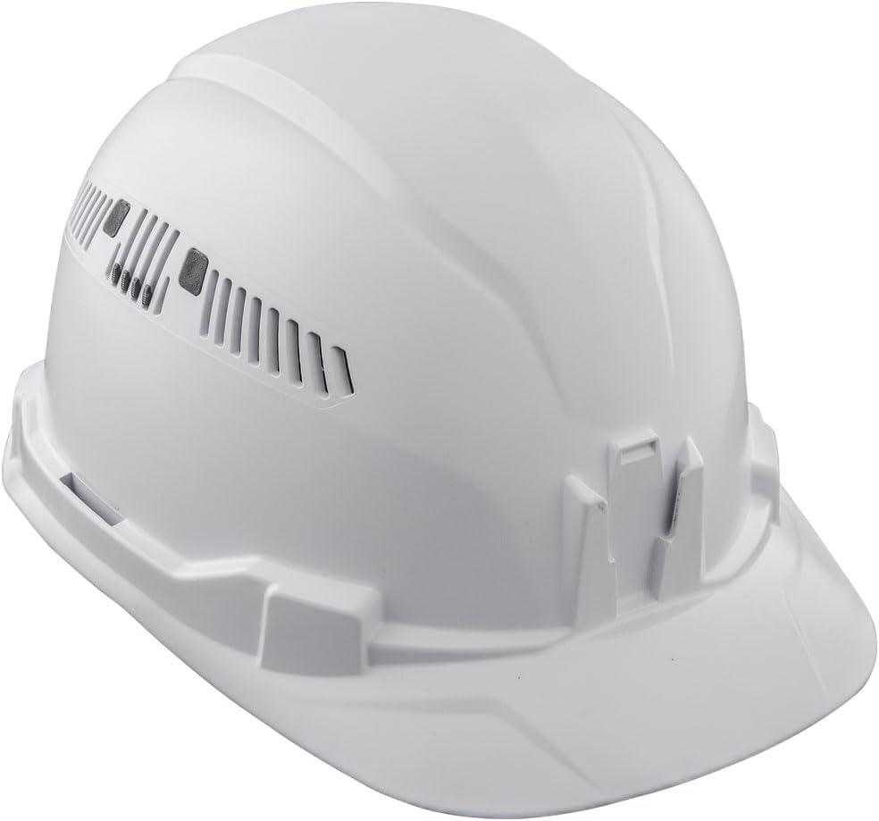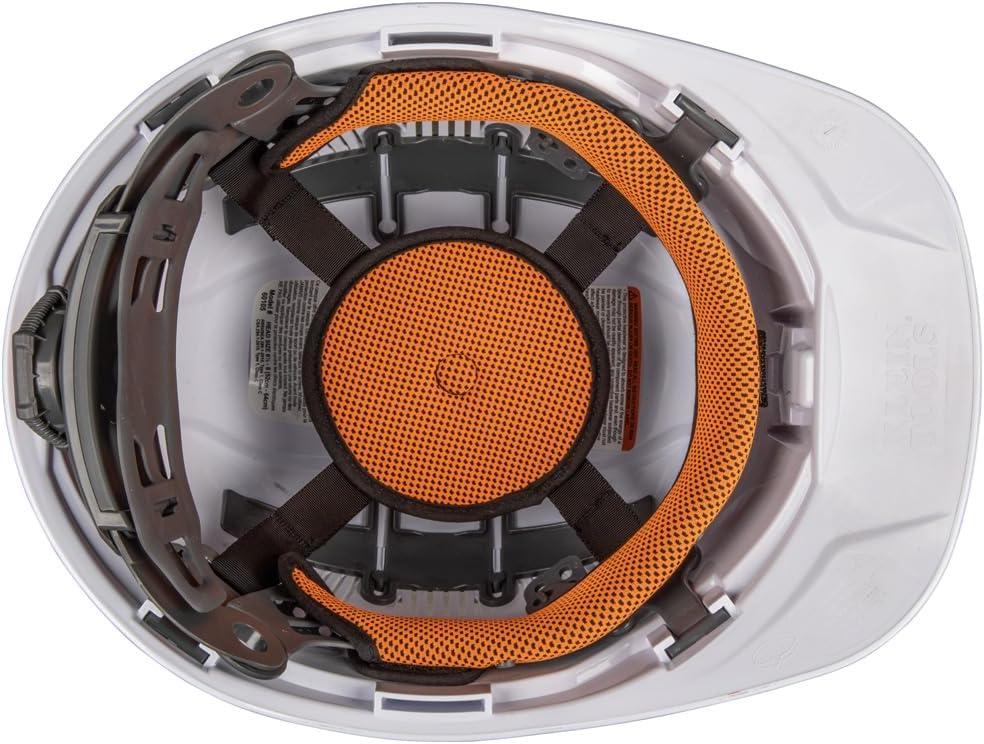 Klein Tools 60113RL Hard Hat, Rechargeable Headlamp, Vented, Cap Style, Padded Self-Wicking Odor-Resistant Sweatband, White(Hard Hat)
