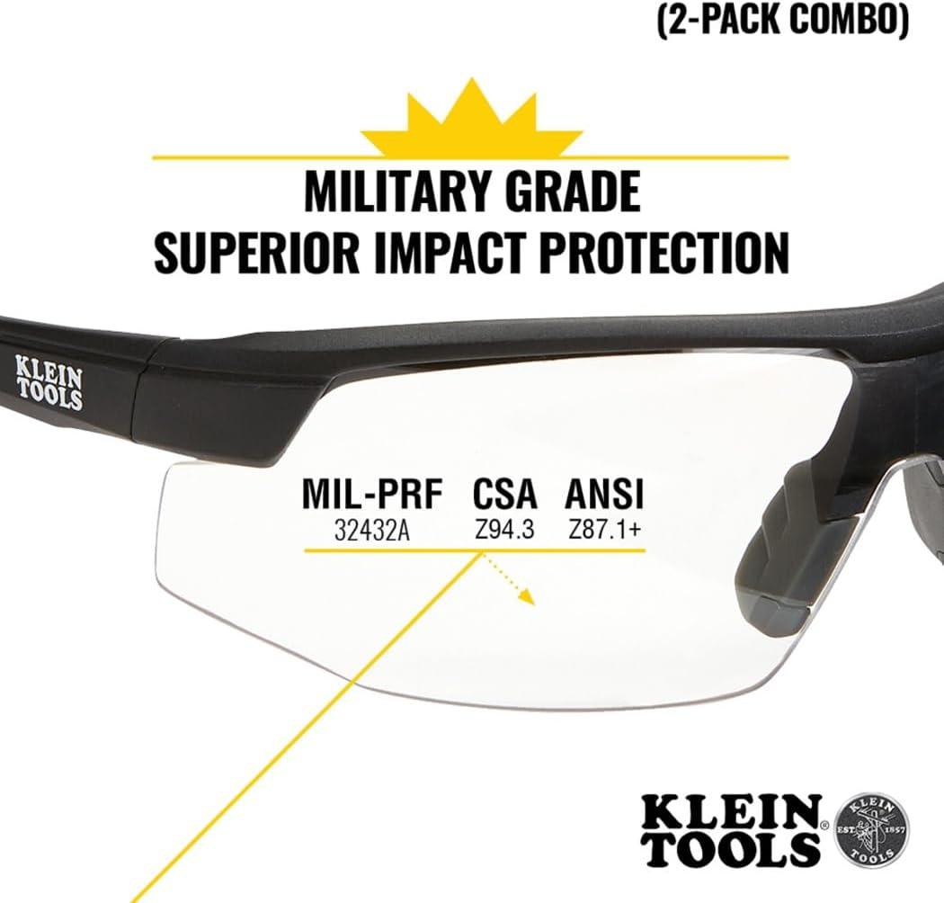 Klein Tools 60171 Safety Glasses, PPE Protective Eyewear with Semi Frame, Scratch Resistant and Anti-Fog, Clear Lens, 2-Pack(Clear/Gray Lens)