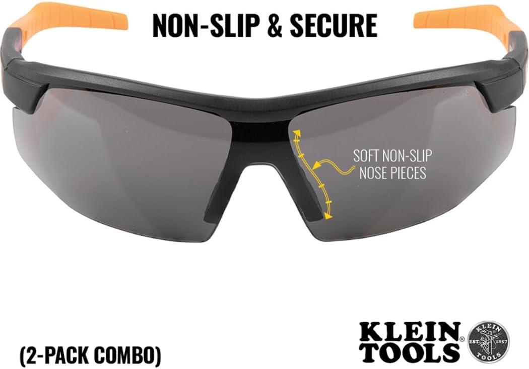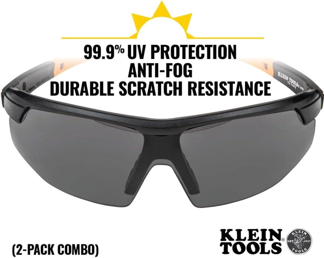 Klein Tools 60171 Safety Glasses, PPE Protective Eyewear with Semi Frame, Scratch Resistant and Anti-Fog, Clear Lens, 2-Pack(Gray Lens)