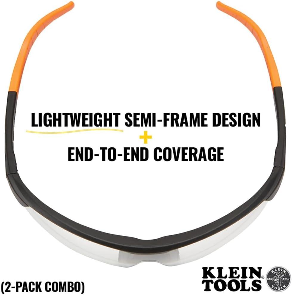 Klein Tools 60171 Safety Glasses, PPE Protective Eyewear with Semi Frame, Scratch Resistant and Anti-Fog, Clear Lens, 2-Pack(Clear Lens)