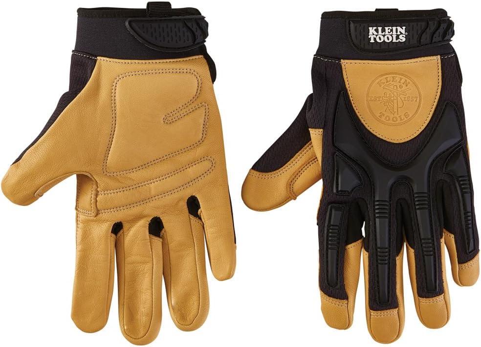 Klein Tools 60188 Work Gloves, Professional Grade Leather Gloves with Knuckle and Finger Protection, Thumb Reinforcement, Mesh Back, Large(Large)