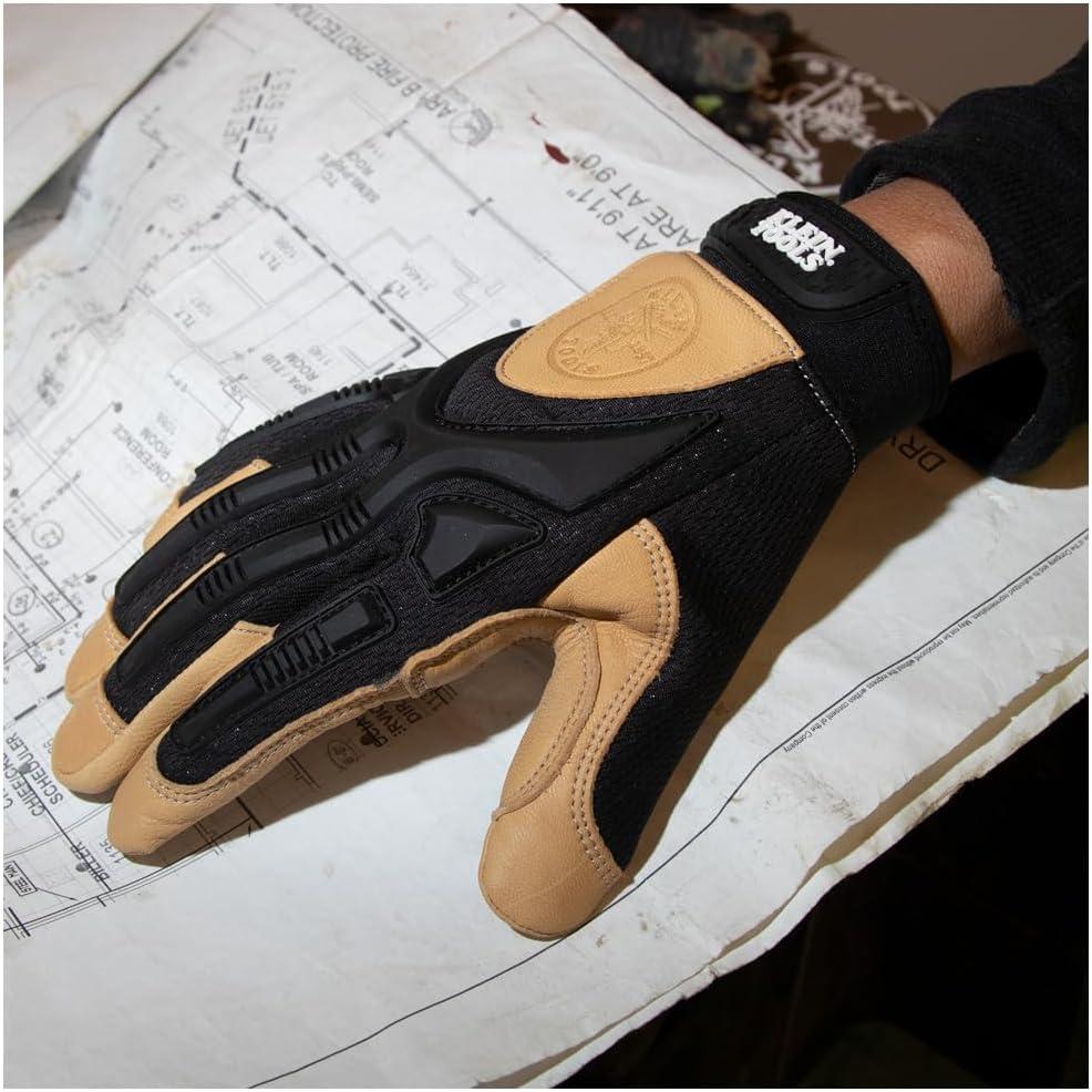 Klein Tools 60188 Work Gloves, Professional Grade Leather Gloves with Knuckle and Finger Protection, Thumb Reinforcement, Mesh Back, Large(Extra-Large)