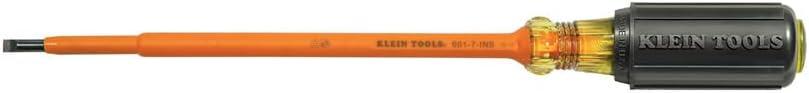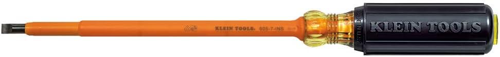 Klein Tools 602-7-INS Flathead Screwdriver, Made in USA, 5/16-Inch Cabinet Tip, Insulated, 7-Inch Shank(7-Inch Shank)