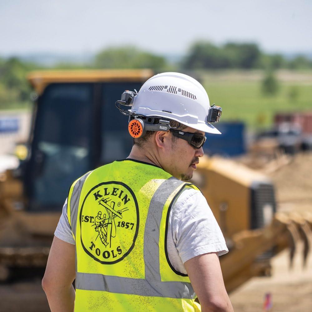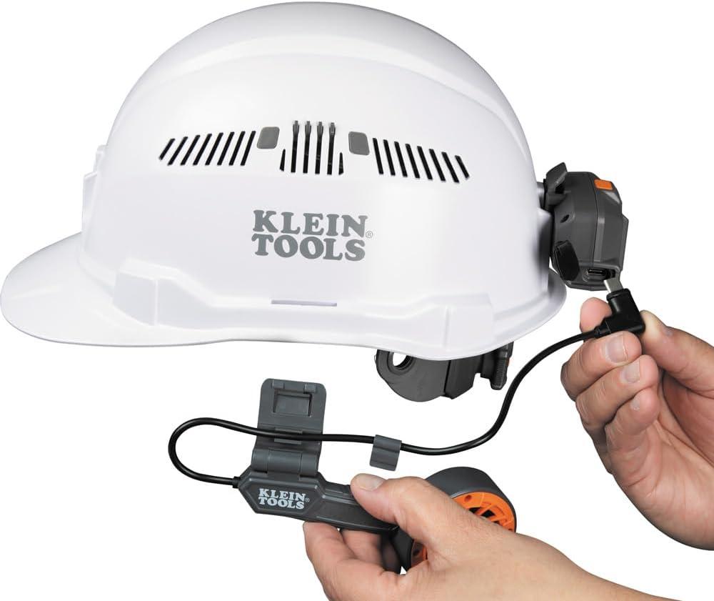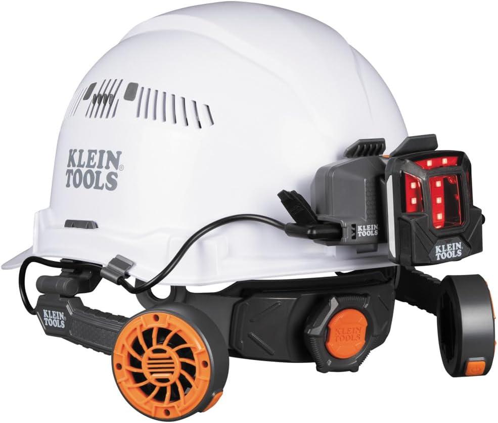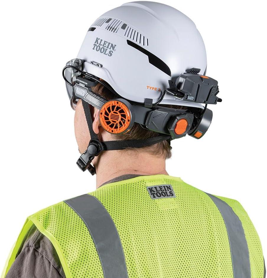 The Klein Tools' Lightweight Cooling Fan is designed to fit Klein Tools Hard Hats (cap style and full brim) and Klein Safety Helmets to primarily direct airflow to the neck area and back of the head. The quiet fan can be independently controlled, adjusted and positioned for all day comfort. The compact fan attaches to the side accessory slots to maintain good balance, low profile, and help focus airflow. They can be conveniently flipped up for storage when not in use. Powered by Klein's Modular Rechargeable Battery (Cat. No. 29025) that can be used to charge other small USB devices or swapped out with a spare for extended run time.