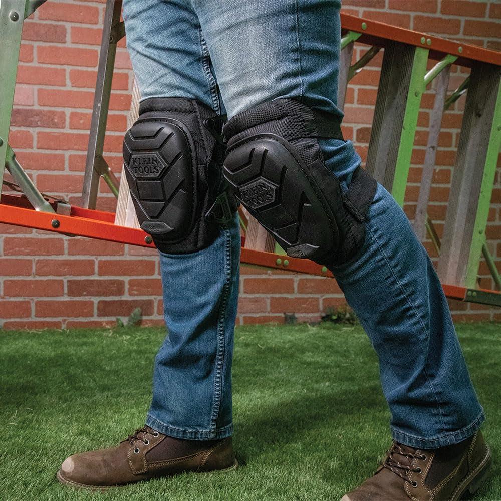 Klein Tools 60896 Knee Pad, Non-Marring, Gel-Like Padding, Semi-Round Stabilizing Knee Pads with Adjustable Straps for Construction and Flooring(Heavy Duty Non-Marring)