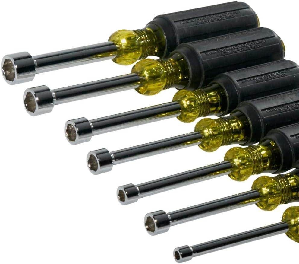 This 7-Piece Nut Driver Set from Klein Tools features a wide selection of the most frequently used nut drivers with 3-Inch (76 mm) shafts. Each nut driver features Tip-Ident to quickly identify the nut driver and size. Cushion-Grip handles provide for greater torque and comfort, no slippage. For more than 160 years, Klein Tools has manufactured premium-quality, professional-grade hand tools that deliver the performance, durability and precision needed to get the job done right. Our family of engineers, workers and craftsman continue to put six generations of expertise into every tool we create by using only the highest quality materials, superior workmanship, and keeping manufacturing as close to home as we can. Klein isn't just the name of our company, it's also our family name. And since we're an American company that's family-owned and family-run, you know you can count on us to be here tomorrow. Klein Tools doesn't just make great products, we make great products that stand up to the demands of the professionals who use them every day … Since 1857.