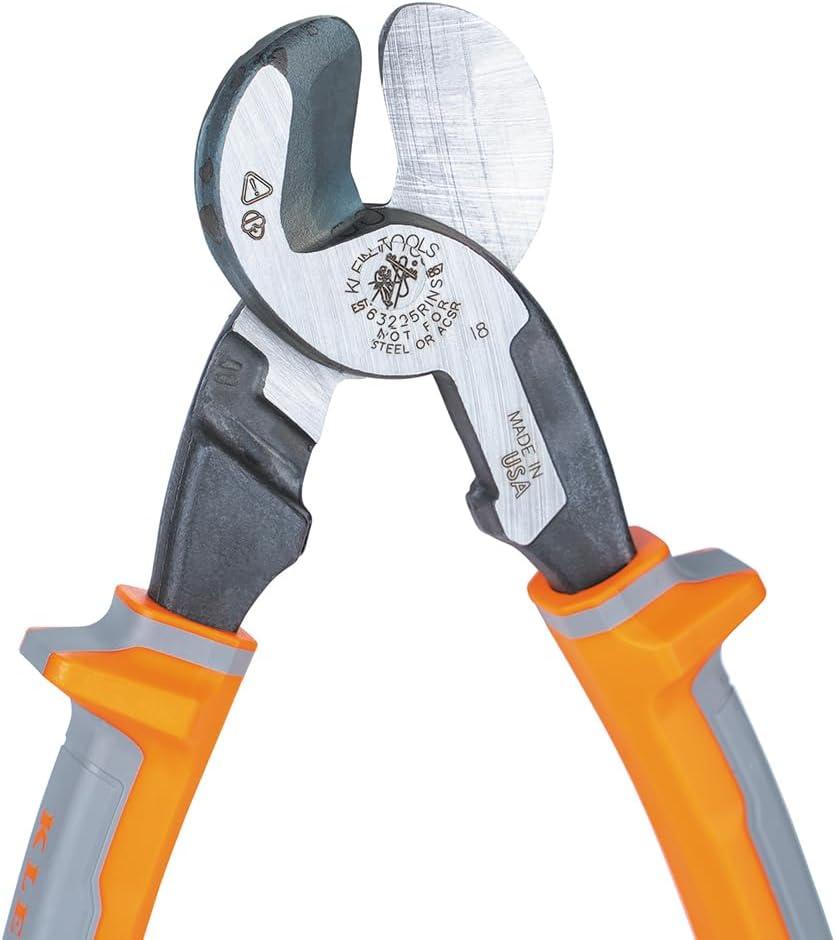 This insulated high-leverage cable cutter cuts aluminum, copper and communications cable. Cable-gripping shear-type jaws and a high-leverage design translate to 30-Percent less force needed to cut as compared to Klein's 63050 model. Through-hardened, not case-hardened, cutting surfaces increase the durability and life of this tool. For more than 160 years, Klein Tools has manufactured premium-quality, professional-grade hand tools that deliver the performance, durability and precision needed to get the job done right. Our family of engineers, workers and craftsman continue to put six generations of expertise into every tool we create by using only the highest quality materials, superior workmanship, and keeping manufacturing as close to home as we can. Klein isn't just the name of our company, it's also our family name. And since we're an American company that's family-owned and family-run, you know you can count on us to be here tomorrow. Klein Tools doesn't just make great products, we make great products that stand up to the demands of the professionals who use them every day … Since 1857.