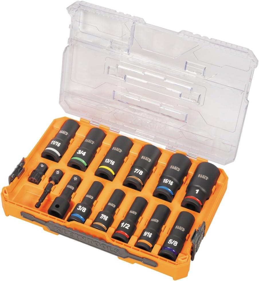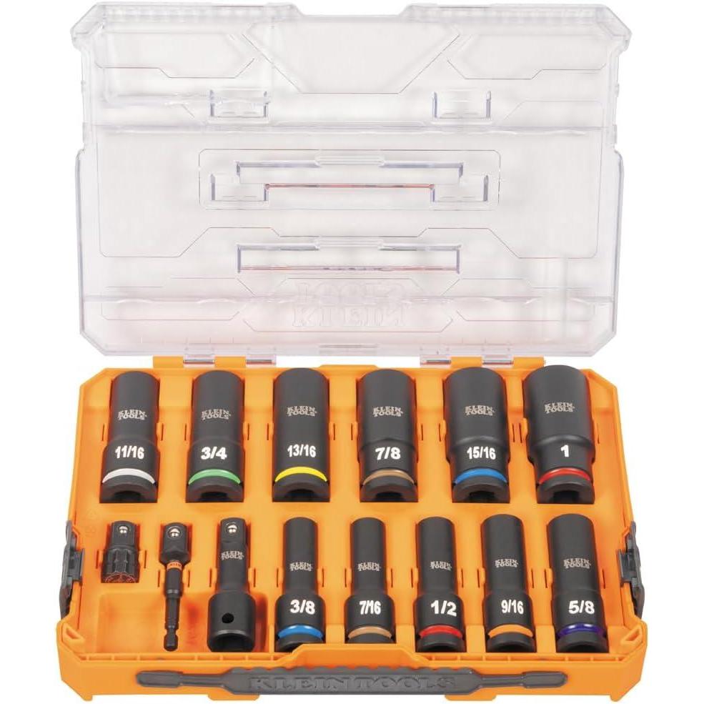 Get up to 70% off on Klein Tools 65111IMPCT KNECT Deep-Well Impact Socket Set, 1/2-Inch Drive, SAE, Color Coded, MODbox Case, Impact Adapter and Extension, 14-Piece(SAE) styles during our end-of-season clearance event.