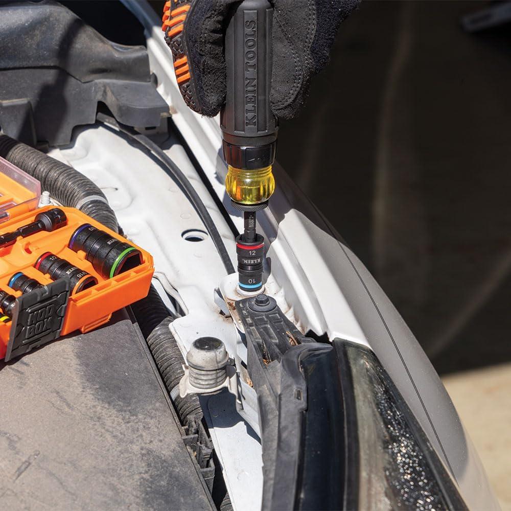 Klein Tools 65238 KNECT Impact Socket Set, Deep Sockets with Wrench, 3 Heavy-Duty Color Coded Flip Sockets, 6 SAE Sizes, Ratchet, Adapter and MODbox Case(Metric & SAE Set)
