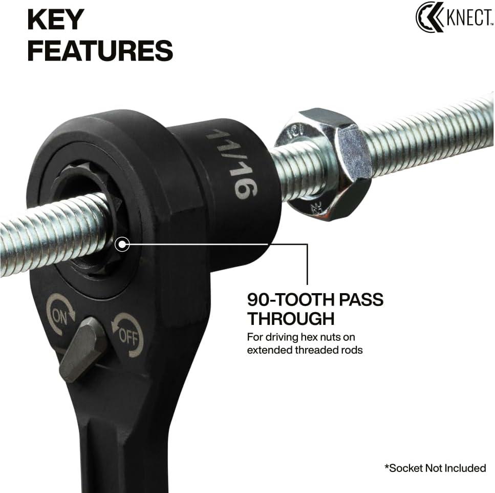 90-TOOTH PASS-THROUGH RATCHET: Slim profile pass through head for driving hex nuts on extended threaded rods