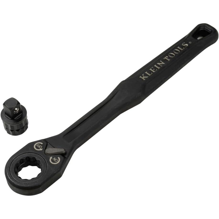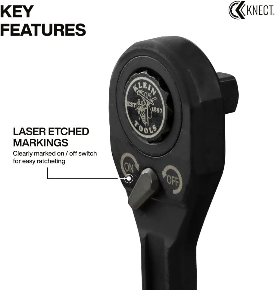 The KNECT (M) 90-tooth pass through ratchet is perfect for driving hex nuts on extended threaded rods. The included 3/8-Inch square drive adapter ensures compatibility with traditional sockets, making it a must-have for any toolbox. Its compact design allows easy access in tight spaces, while the contoured handle provides a comfortable grip. For more than 160 years, Klein Tools has manufactured premium-quality, professional-grade hand tools that deliver the performance, durability and precision needed to get the job done right. Our family of engineers, workers and craftsman continue to put six generations of expertise into every tool we create by using only the highest quality materials, superior workmanship, and keeping manufacturing as close to home as we can. Klein isn't just the name of our company, it's also our family name. And since we're an American company that's family-owned and family-run, you know you can count on us to be here tomorrow. Klein Tools doesn't just make great products, we make great products that stand up to the demands of the professionals who use them every day … Since 1857.