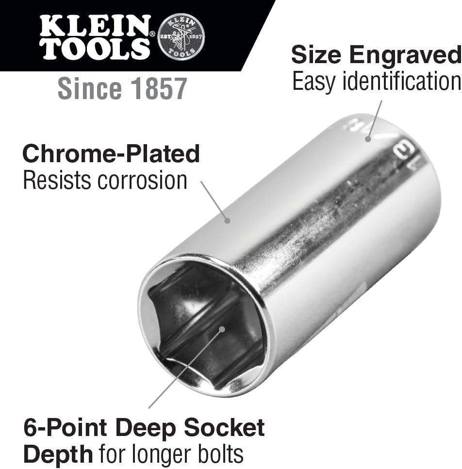 This 13-piece Wrench Set includes nine 1/4-Inch drive socket wrenches. Includes 3/16-Inch, 7/32-Inch, 1/4-Inch, 9/32-Inch, 5/16-Inch, 11/32-Inch, 3/8-Inch, 7/16-Inch and 1/2-Inch 6-point sockets plus spinner handle, one ratchet and two extensions. Keep all of pieces together in a compact hinged metal box. For more than 160 years, Klein Tools has manufactured premium-quality, professional-grade hand tools that deliver the performance, durability and precision needed to get the job done right. Our family of engineers, workers and craftsman continue to put six generations of expertise into every tool we create by using only the highest quality materials, superior workmanship, and keeping manufacturing as close to home as we can. Klein isn't just the name of our company, it's also our family name. And since we're an American company that's family-owned and family-run, you know you can count on us to be here tomorrow. Klein Tools doesn't just make great products, we make great products that stand up to the demands of the professionals who use them every day … Since 1857.