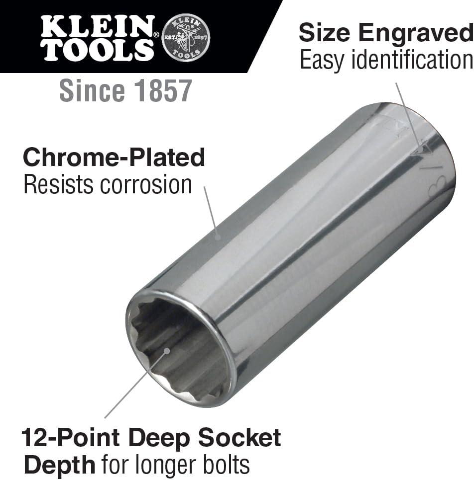 imageKlein Tools 65500 14Inch Drive Socket Wrench Set with Spinner Handle Ratchet and 2 Extensions Case Included 13Piece8Piece