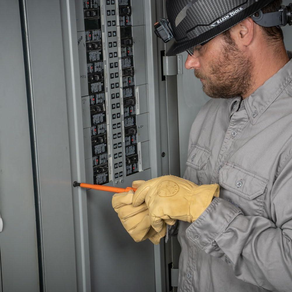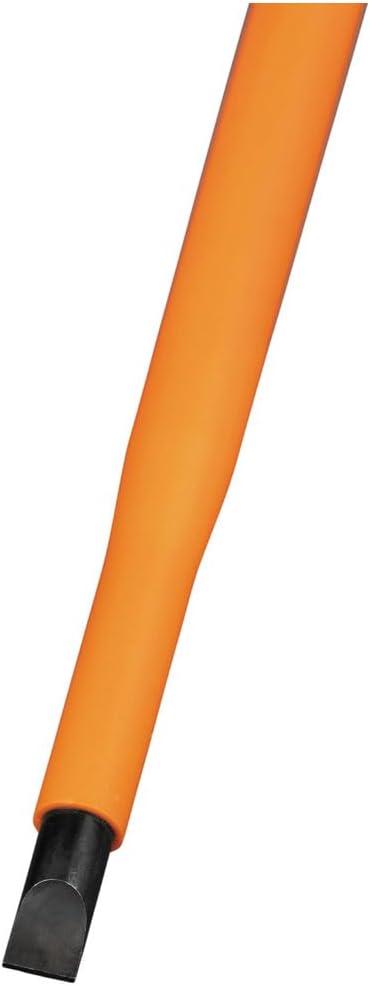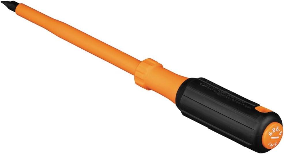 1000V rated screwdriver features a layer of bright orange impact and flame resistant insulation to protect from electrical shock
