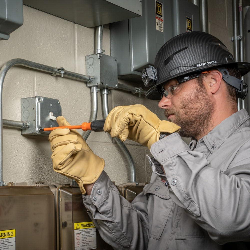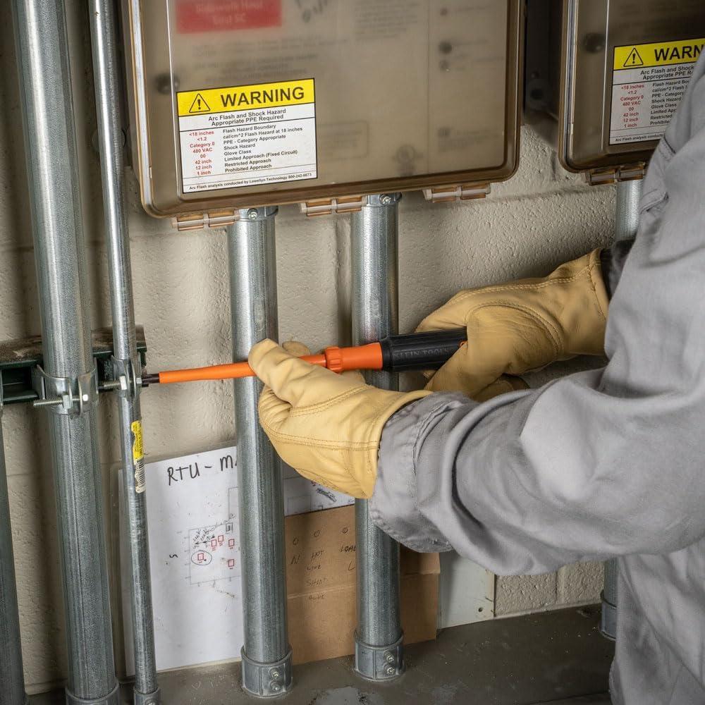 Klein Tools' Insulated Screwdrivers feature a bright orange coating of flame and impact resistant insulation to protect against electrical shock. These tools exceed the ASTM F1505 standards for insulated tools, and are clearly marked with the official 1000V rating symbol. The tether hole in the handle provides added safety when working at height. Available in 4-Inch and 6-Inch round shanks with a variety of tips. For more than 160 years, Klein Tools has manufactured premium-quality, professional-grade hand tools that deliver the performance, durability and precision needed to get the job done right. Our family of engineers, workers and craftsman continue to put six generations of expertise into every tool we create by using only the highest quality materials, superior workmanship, and keeping manufacturing as close to home as we can. Klein isn't just the name of our company, it's also our family name. And since we're an American company that's family-owned and family-run, you know you can count on us to be here tomorrow. Klein Tools doesn't just make great products, we make great products that stand up to the demands of the professionals who use them every day … Since 1857.
