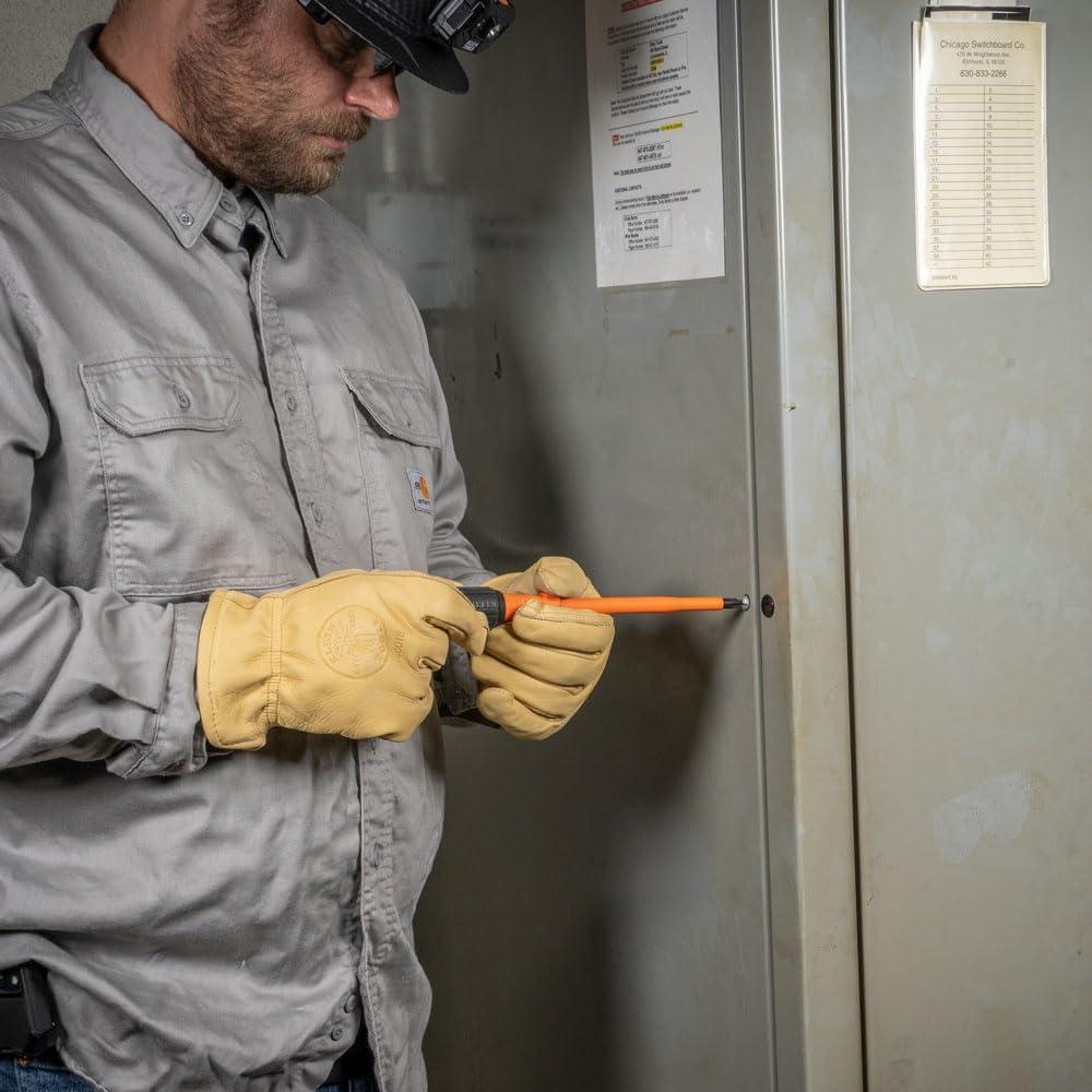 1000V RATED insulated driver features a layer of bright orange impact and flame resistant insulation to protect from electrical shock