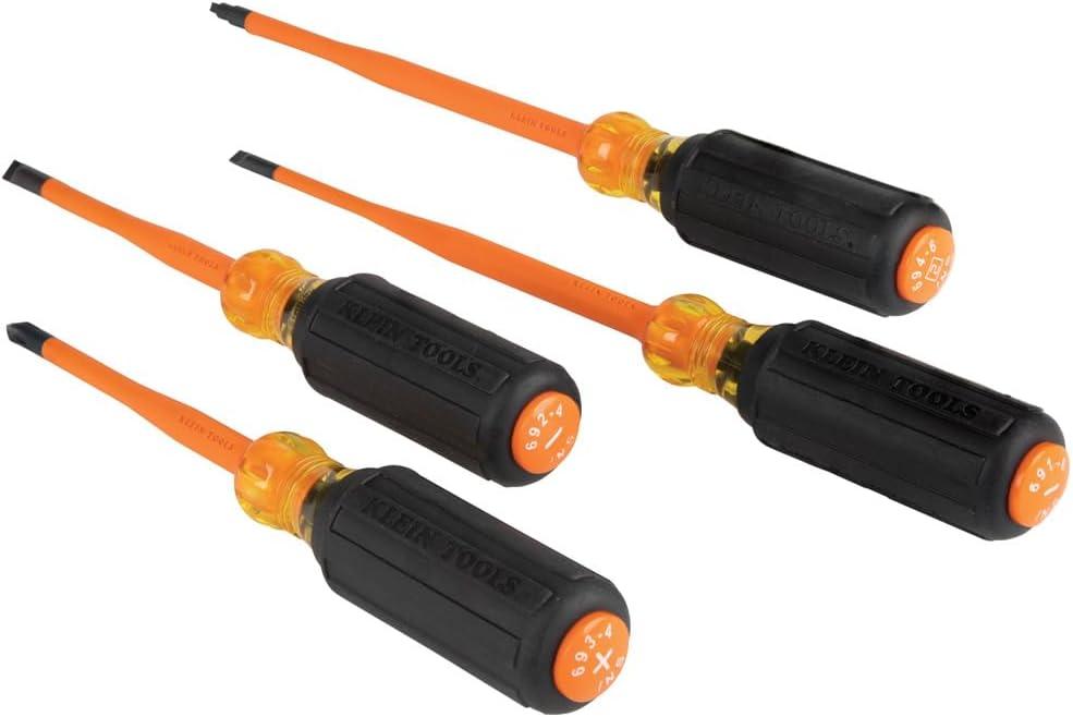 Klein Tools 6916INS 1000V Slim Tip Insulated Screwdriver, Made in USA, Screwdriver with 6-Inch Round Shank, 3/16-Inch Cabinet Tip, Cushion Grip Handle(4-Piece Set)