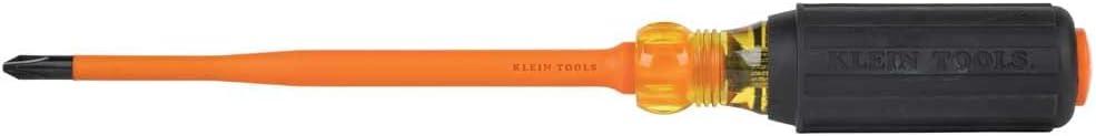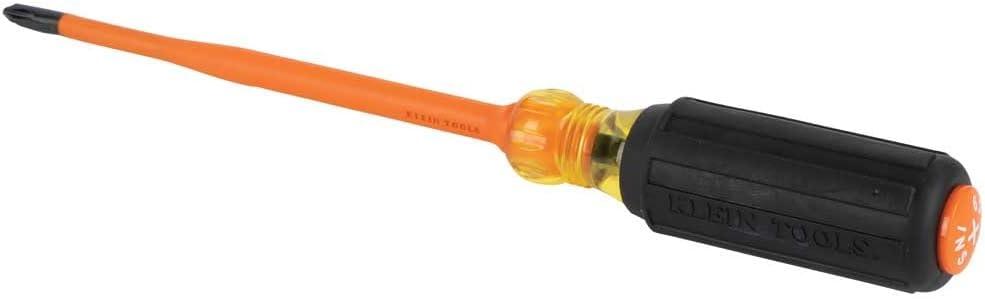 Klein Tools' Slim-Tip Insulated Screwdrivers have slim profile tips that allow for greater access into terminal blocks, slim-style breakers, or other tight spaces near energized sources. A bright orange coating of insulation protects from electrical shock, is flame and impact resistant, and sits flush with the tip helping to reduce insulation chipping and cracking. Klein insulated tools exceed the ASTM F1505 standards for insulated tools, and are clearly marked with the official 1000V rating symbol. A must-have for any electricians tool bag, these screwdrivers are available in 4-Inch and 6-Inch lengths and a variety of tips.