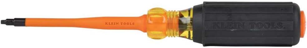 Klein Tools' Slim-Tip Insulated Screwdrivers have slim profile tips that allow for greater access into terminal blocks, slim-style breakers, or other tight spaces near energized sources. A bright orange coating of insulation protects from electrical shock, is flame and impact resistant, and sits flush with the tip helping to reduce insulation chipping and cracking. Klein insulated tools exceed the ASTM F1505 standards for insulated tools, and are clearly marked with the official 1000V rating symbol. A must-have for any electrician's tool bag, these screwdrivers are available in 4-Inch and 6-Inch lengths in a variety of tips and sizes.