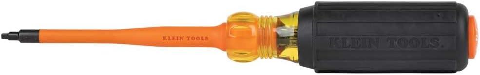 Klein Tools' Slim-Tip Insulated Screwdrivers have slim profile tips that allow for greater access into terminal blocks, slim-style breakers, or other tight spaces near energized sources. A bright orange coating of insulation protects from electrical shock, is flame and impact resistant, and sits flush with the tip helping to reduce insulation chipping and cracking. Klein insulated tools exceed the ASTM F1505 standards for insulated tools, and are clearly marked with the official 1000V rating symbol. A must-have for any electricians tool bag, these screwdrivers are available in 4-Inch and 6-Inch lengths and a variety of tips.