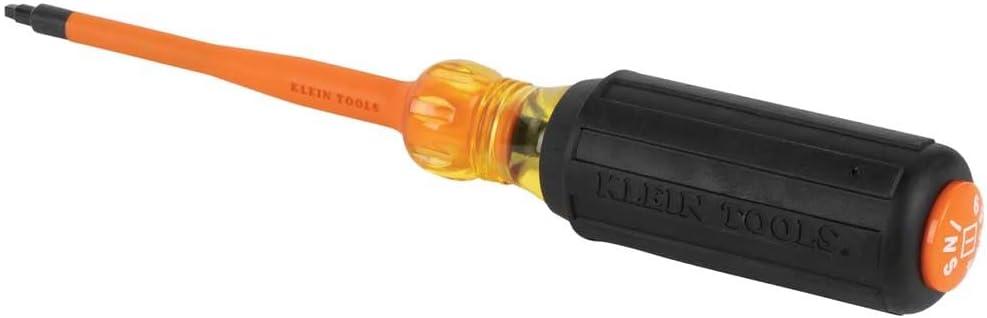 Klein Tools 6984INS Insulated Screwdriver, Made in USA, Screwdriver with 1000V Slim Profile Tip, #1 Square with 4-Inch Shank, Cushion-Grip Handle