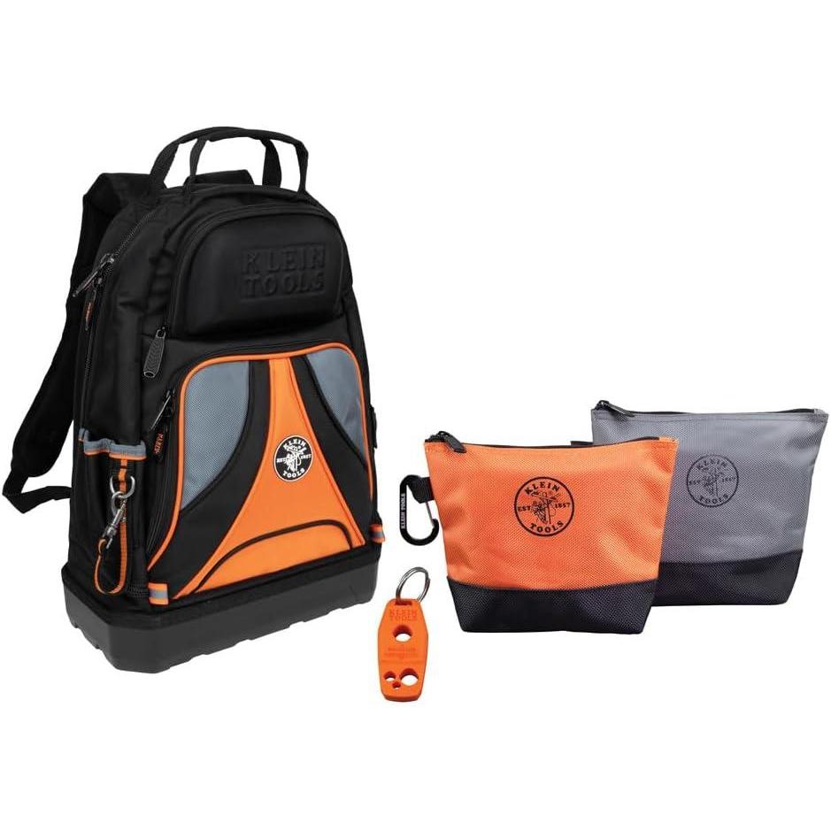 This 4-Piece Klein Tools' Backpack Tool Kit is designed with the tradesperson in mind. The Tradesman Pro Tool Organizer Backpack features 39 pockets for plenty of tool storage, including a hard, molded front pocket for safety glasses and a front zipper pocket to store loose parts. Klein Tools' new Stand-Up Zipper Bags will keep your pieces and parts organized. Klein Tools' Magnetizer quickly and easily magnetizes your screwdrivers and bits to hold your fasteners on the tip of your screwdriver to get the job done fast.