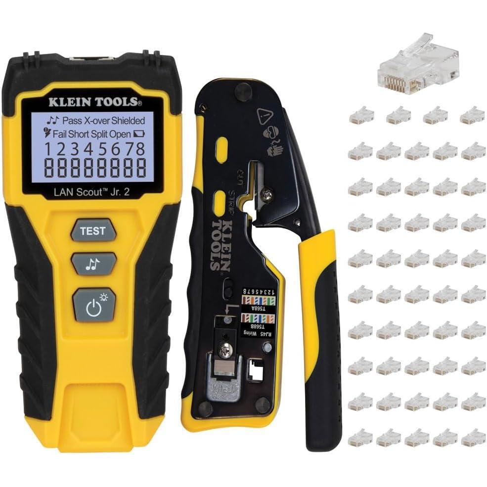 3-Piece Klein Tools Cable Tester Kit has everything the professional needs. The LAN Scout Jr. 2 Cable Tester tests installed or loose data (CAT 5e, CAT 6/6A) cables terminated with RJ45 connectors. The Coax Cable Crimper / Wire Stripper / Wire Cutter is a premium, long lasting tool for CAT3, CAT5e and CAT6/6A cable using RJ11/RJ12 standard and RJ45 Pass-Thru connectors. Exclusive Klein-designed Pass-Thru modular plugs for fast, reliable connector installations for and data applications. For more than 160 years, Klein Tools has manufactured premium-quality, professional-grade hand tools that deliver the performance, durability and precision needed to get the job done right. Our family of engineers, workers and craftsman continue to put six generations of expertise into every tool we create by using only the highest quality materials, superior workmanship, and keeping manufacturing as close to home as we can. Klein isn't just the name of our company, it's also our family name. And since we're an American company that's family-owned and family-run, you know you can count on us to be here tomorrow. Klein Tools doesn't just make great products, we make great products that stand up to the demands of the professionals who use them every day … Since 1857.