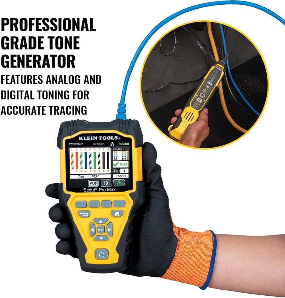 Klein Tools 80179 Scout Pro Max VDV Tester Set, Network Cable Tester with Remote and Digital Tracing Probe for Coax, Phone, and RJ Connectors