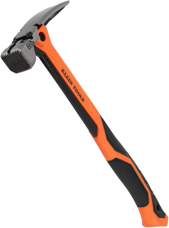 Klein Tools 832-26 Lineman’s 26-Ounce Claw Milled Hammer, Fiberglass Handle, Heavy Duty for Utility Poles, Milled Face, High Visibility Orange(26 oz)