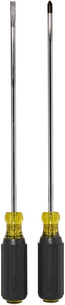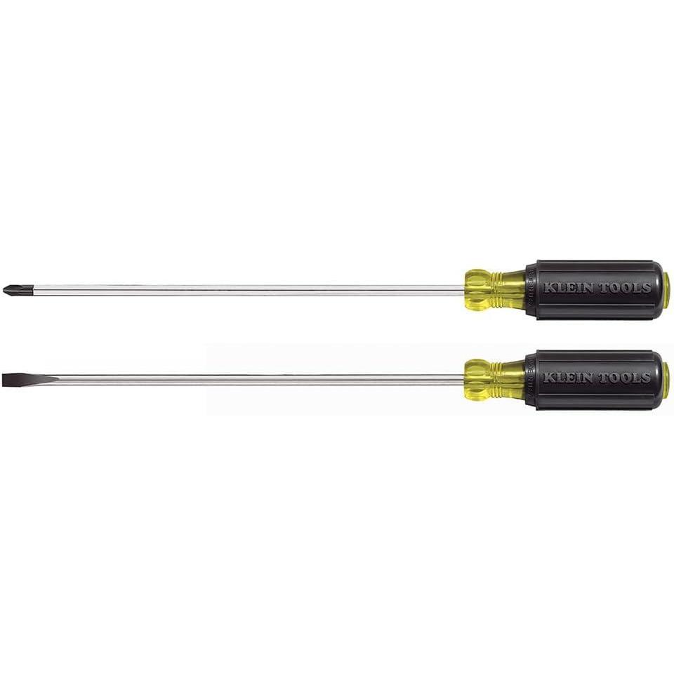 This Screwdriver Set is designed for those hard-to-reach places. These Klein Tools Long Blade Slotted and Phillips 2-Piece Screwdriver Set are 10-Inches long, and the shafts are heat treated and chrome plated for durability. They also feature Cushioned-Grip handles for increased comfort and torque. For more than 160 years, Klein Tools has manufactured premium-quality, professional-grade hand tools that deliver the performance, durability and precision needed to get the job done right. Our family of engineers, workers and craftsman continue to put six generations of expertise into every tool we create by using only the highest quality materials, superior workmanship, and keeping manufacturing as close to home as we can. Klein isn't just the name of our company, it's also our family name. And since we're an American company that's family-owned and family-run, you know you can count on us to be here tomorrow. Klein Tools doesn't just make great products, we make great products that stand up to the demands of the professionals who use them every day … Since 1857.