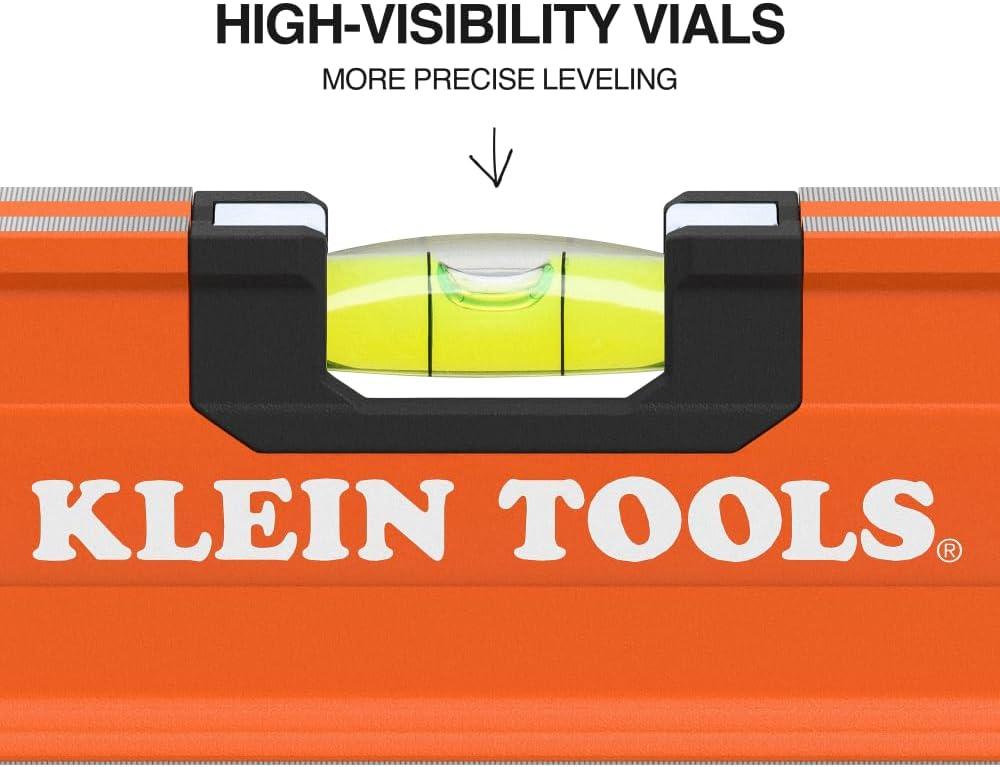 Klein Tools 93524MAG 24-Inch Box Level, Magnetic Box Beam Bubble Level, 3 Vials, High Visibility Orange, Aluminum Body, V-Groove and Magnet Track(24-Inch)