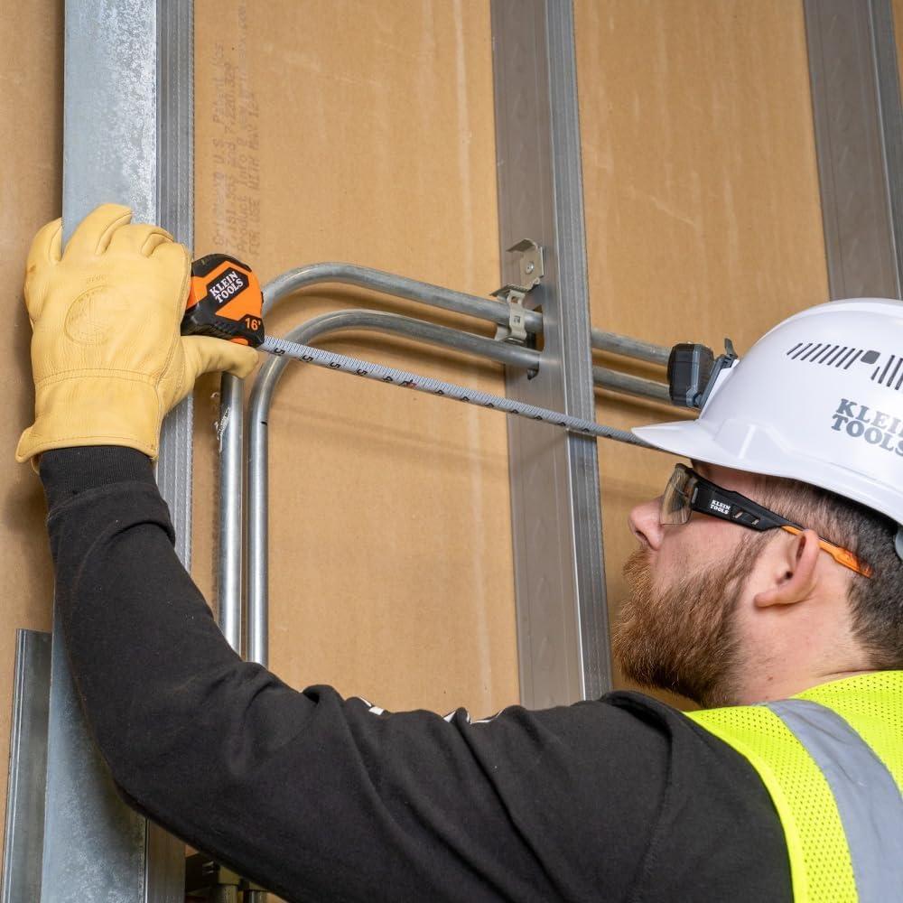 Klein Tool's Lightweight Tape Measure offers a best in-class compact design with up to 13 feet of reach and delivers a product that is easy to carry around all day and store in tight areas to make jobs easier and more efficient. A finger brake controls the blade retraction speed for extra hand protection and a safer retraction. The durable nylon coating protects the layout markings and prevents the tape blade from rust and degradation. The high impact rugged, compact design stands up to basic demands of any jobsite.