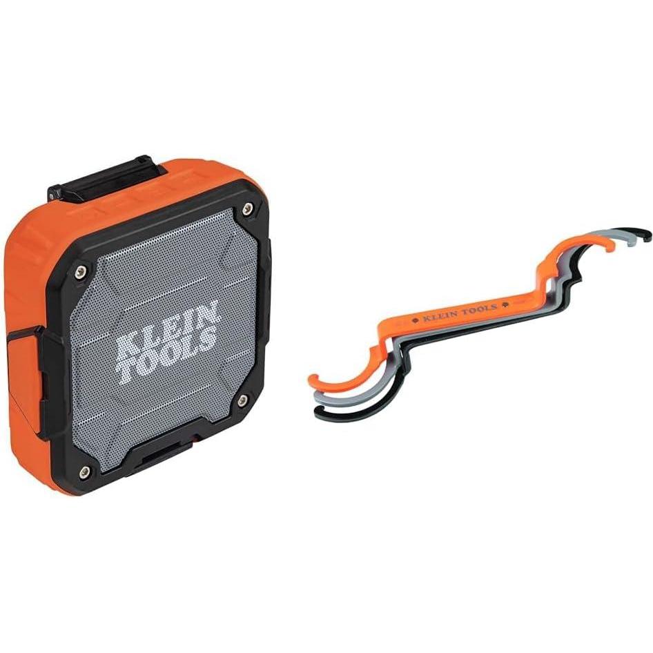 Klein Tools' wireless Bluetooth Speaker with Magnetic Strap offers great sound plus more mounting options. The flexible strap can be used on conduit, backpacks, cooler handles, belt loops… wherever you want to go. A magnet is smartly embedded in the strap allowing you to attach it to any ferrous surface. This speaker provides high-quality, crisp treble and bold bass via a wireless Bluetooth connection or wired auxiliary input. With great sound, the hands-free speakerphone, and superior mounting options, this rugged speaker is essential for both on and off the job site.