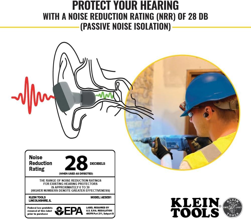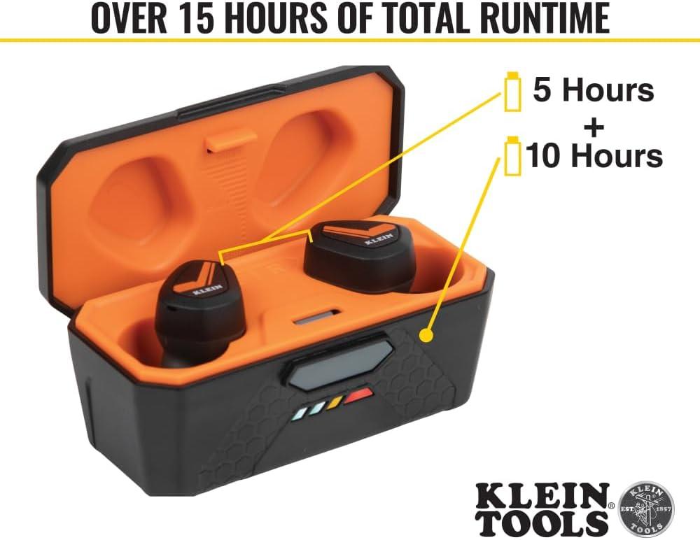 Klein Tools Bluetooth Earbuds provide passive hearing protection while simultaneously delivering a balanced high-quality audio experience. These true wireless earbuds feature an NRR of 28 when used with the included memory foam tips while the silicone tips offer comfort and secure fit for casual use. All-day battery life with 5+ hours of playtime from a single charge and an extra 10+ hours with the compact charging case. For more than 160 years, Klein Tools has manufactured premium-quality, professional-grade hand tools that deliver the performance, durability and precision needed to get the job done right. Our family of engineers, workers and craftsman continue to put six generations of expertise into every tool we create by using only the highest quality materials, superior workmanship, and keeping manufacturing as close to home as we can. Klein isn't just the name of our company, it's also our family name. And since we're an American company that's family-owned and family-run, you know you can count on us to be here tomorrow. Klein Tools doesn't just make great products, we make great products that stand up to the demands of the professionals who use them every day … Since 1857.