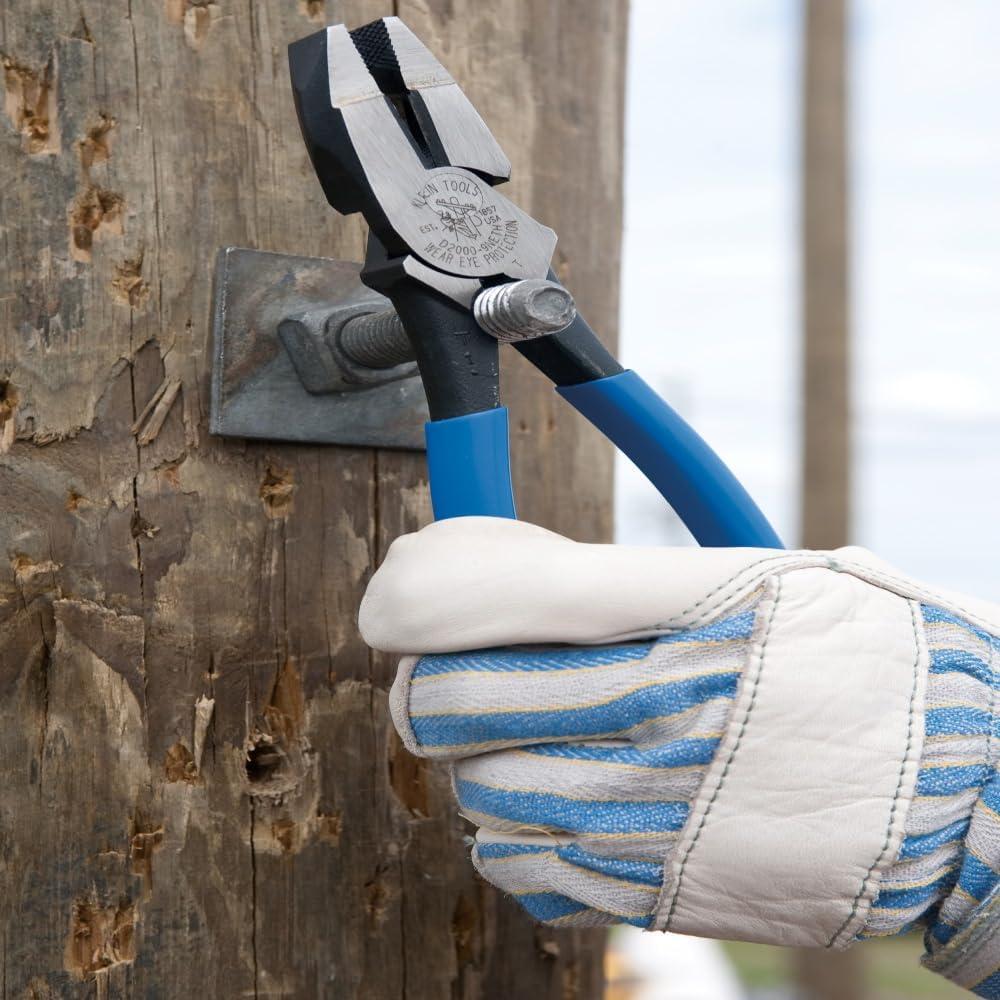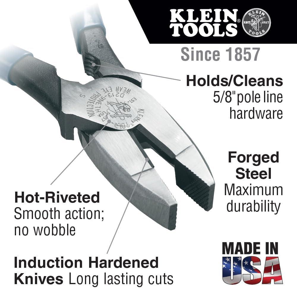Klein Tools D2000-9NE Side Cutter Linemans Pliers, Made in USA, Cut ACSR, Screws, Nails, Hard Wire, 9-Inch Electrical Pliers