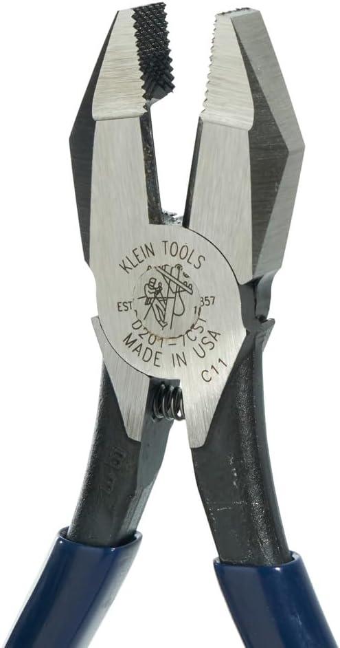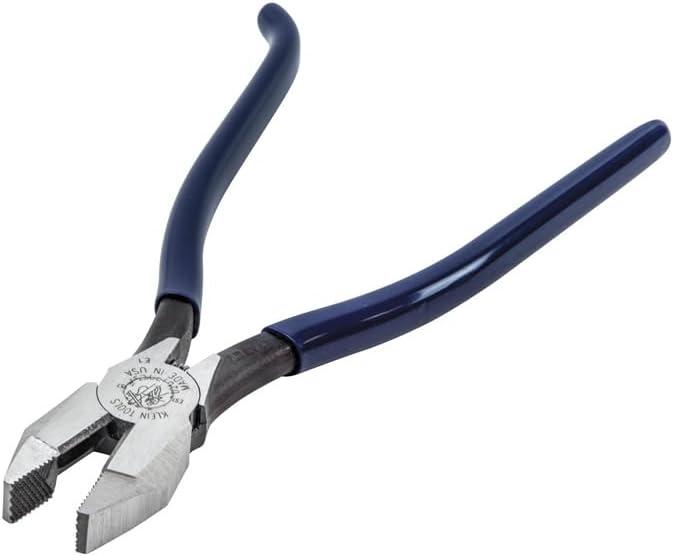 Klein D201-7CST Ironworker's Work Pliers. The Klein D201-7CST Ironworker's Work Pliers twists and cuts soft annealed rebar tie wire. The Klein D201-7CST Ironworker's Work Pliers features a hook bend handle. The Klein D201-7CST Ironworker's Work Pliers has spring-loaded action for self-opening. The Klein D201-7CST Ironworker's Work Pliers features heavy-duty knurled jaws.