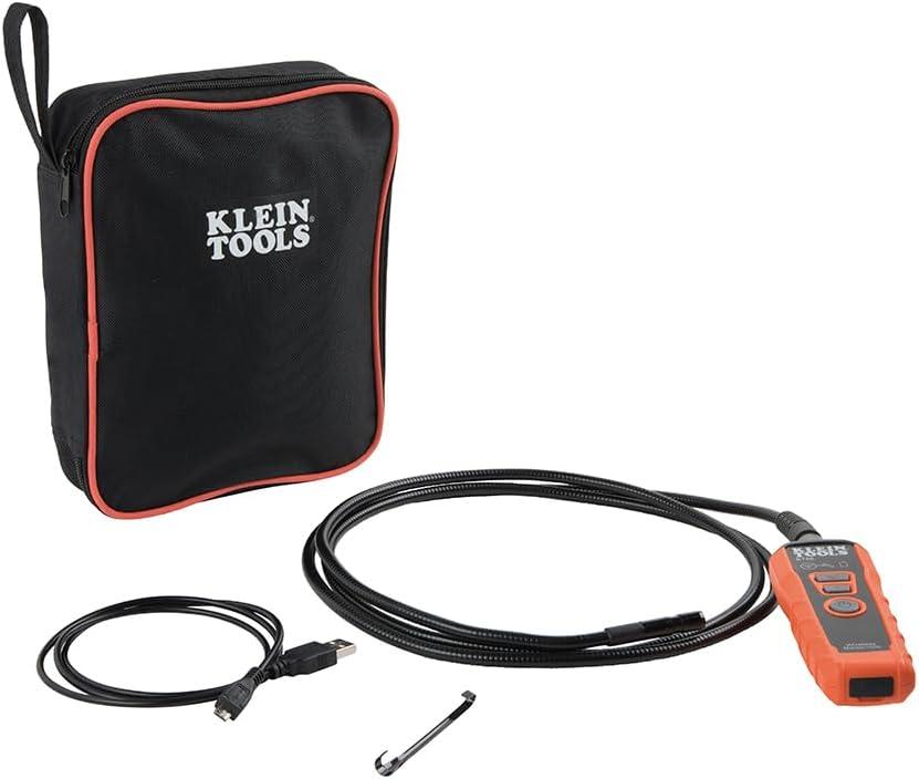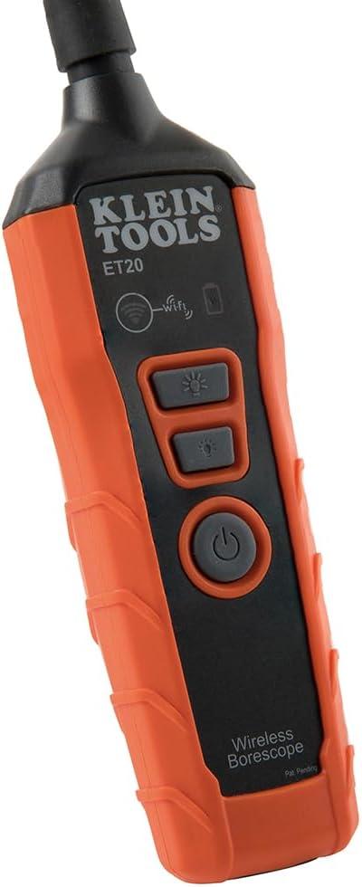 The new Klein Tools ET20 Borescope can be quickly connected to your smartphone via the built-in WiFi signal, turning the smartphone in your pocket into a smart tool. Install the compatible App on your phone to display, record, store and also share your images and videos via text or email. This Borescope enables you to capture high-quality photo and video directly to your device from up to 30 feet away. It features a waterproof 9 mm camera with durable, armored 6-Foot (1.8 m) flexible gooseneck cable, on-board LED lights, convenient pocket clip and rechargeable lithium-ion battery.