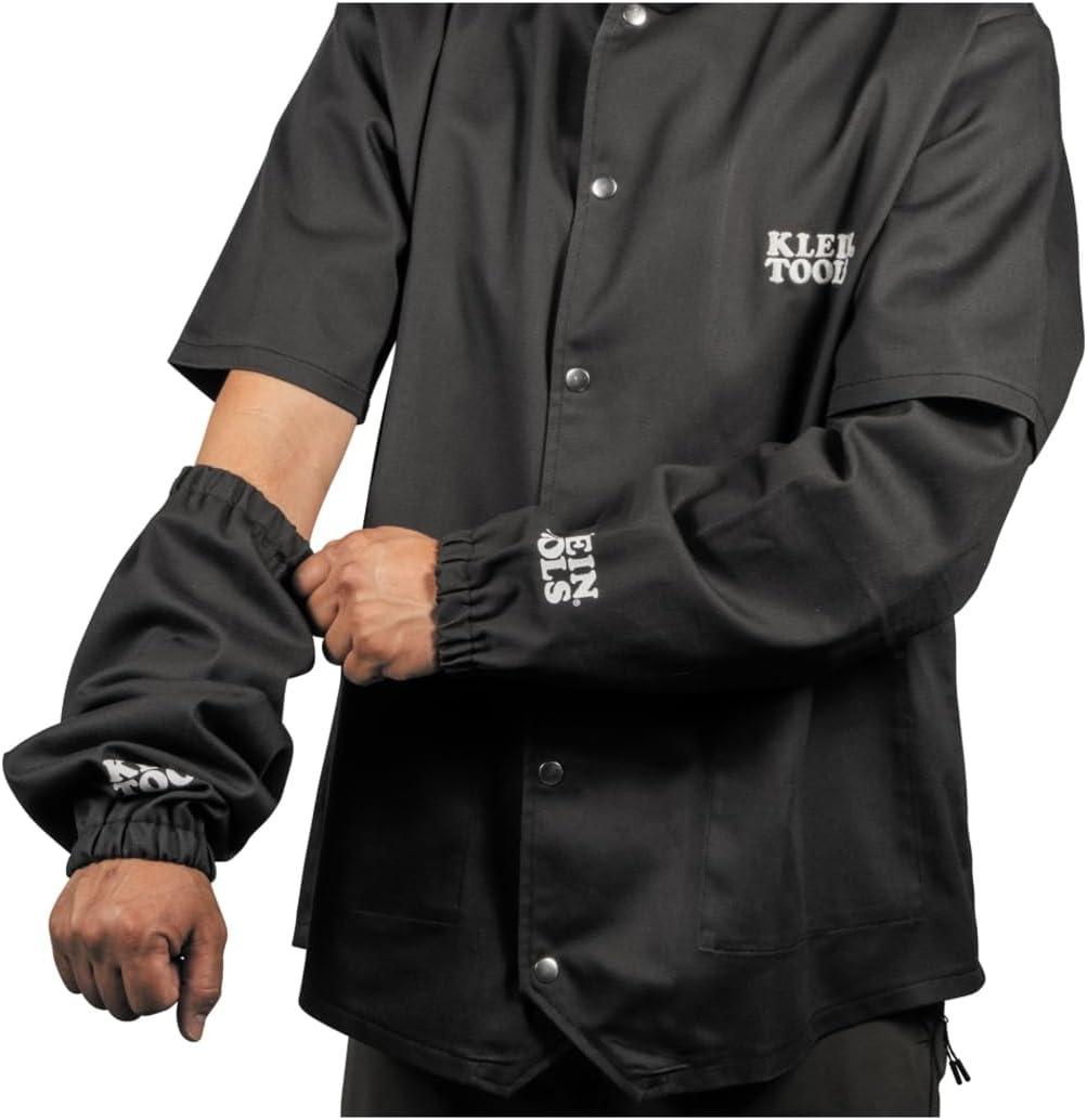 Klein Tools' short sleeve welding jacket with removable welding sleeves is ASTM F1506 Sec. 7.6 compliant. The back of the jacket features a breathable FR mesh for added air flow. Welding sleeves offer flexibility to replace sleeves or use alternate sleeve type. Adjustable metal snap-button collar offers the end user a proper fit and protection from sparks and weld spatter. The jacket includes interior pockets. For more than 160 years, Klein Tools has manufactured premium-quality, professional-grade hand tools that deliver the performance, durability and precision needed to get the job done right. Our family of engineers, workers and craftsman continue to put six generations of expertise into every tool we create by using only the highest quality materials, superior workmanship, and keeping manufacturing as close to home as we can. Klein isn't just the name of our company, it's also our family name. And since we're an American company that's family-owned and family-run, you know you can count on us to be here tomorrow. Klein Tools doesn't just make great products, we make great products that stand up to the demands of the professionals who use them every day … Since 1857.