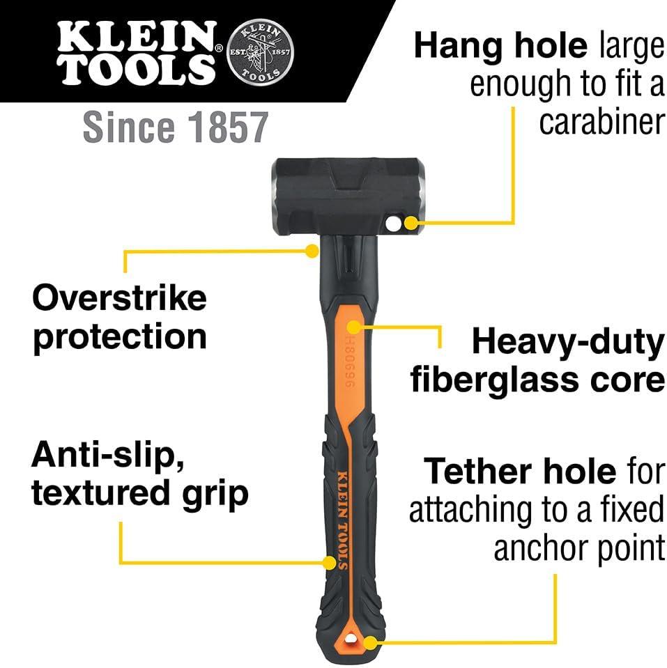 Klein Tools' Sledgehammer is proudly forged and assembled in the USA. The comfortable anti-slip, shock reducing grip absorbs the vibration of impact and keeps hand firmly in place. Sledgehammer also features an opening on the hammerhead for easy carabiner attachment to secure on belts or tool organizers. For more than 160 years, Klein Tools has manufactured premium-quality, professional-grade hand tools that deliver the performance, durability and precision needed to get the job done right. Our family of engineers, workers and craftsman continue to put six generations of expertise into every tool we create by using only the highest quality materials, superior workmanship, and keeping manufacturing as close to home as we can. Klein isn't just the name of our company, it's also our family name. And since we're an American company that's family-owned and family-run, you know you can count on us to be here tomorrow. Klein Tools doesn't just make great products, we make great products that stand up to the demands of the professionals who use them every day … Since 1857.