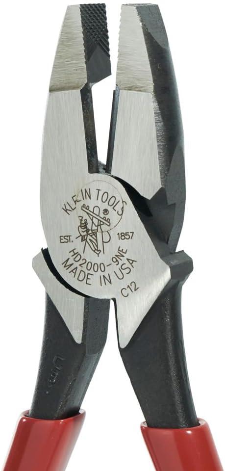 Klein Tools HD2000-9NE Side Cutter Linemans Pliers Cut ACSR, Made in USA, Screws, Nails, Hard Wire, 9-Inch Electrical Pliers(Standard)