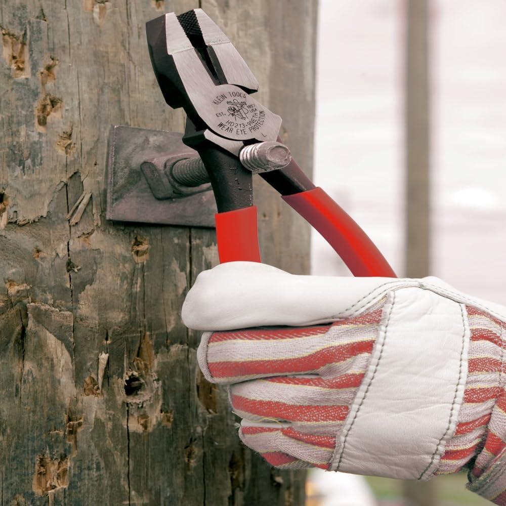 The thicker-dipped handles on these Lineman's Pliers make them more comfortable and easier to grab with gloved hands. 2000 series knives cut ACSR, screws, nails and most hardened wire. The high-leverage design provides 46-Percent greater cutting and gripping power. The plier head is precision-hardened for toughness and durability. For more than 160 years, Klein Tools has manufactured premium-quality, professional-grade hand tools that deliver the performance, durability and precision needed to get the job done right. Our family of engineers, workers and craftsman continue to put six generations of expertise into every tool we create by using only the highest quality materials, superior workmanship, and keeping manufacturing as close to home as we can. Klein isn't just the name of our company, it's also our family name. And since we're an American company that's family-owned and family-run, you know you can count on us to be here tomorrow. Klein Tools doesn't just make great products, we make great products that stand up to the demands of the professionals who use them every day … Since 1857.