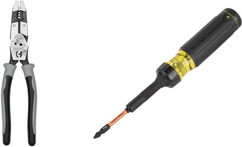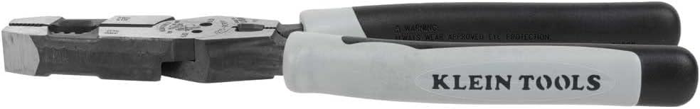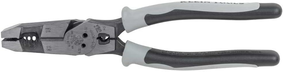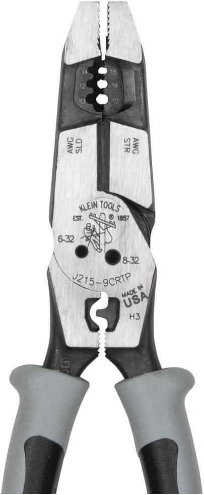 Pliers strip, cut, pull, twist, shear and crimp with one tool. These hybrid pliers feature a built-in channel to pull steel fish tape without damaging the wire. With full length, induction hardened knives and a high-leverage design, these hybrid pliers provide more cutting power on hard wire. It easily strips 10-14 AWG solid and 12-16 stranded wire. The wide, knurled head easily grabs and twists wires. Convenient holes for shearing 6-32 and 8-32 bolts plus a crimper for non-insulated connectors, lugs and terminals make this a must-have tool for your bag.