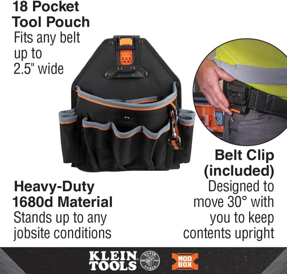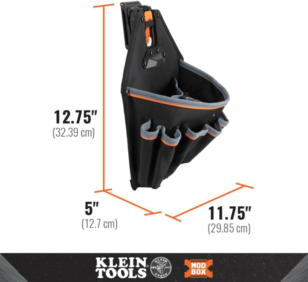 Klein Tools MODbox Tool Pouch, Electrician Bag, Quickly Attach and Release from Tool Belts and MODBox Rail System(18-Pocket Pouch)