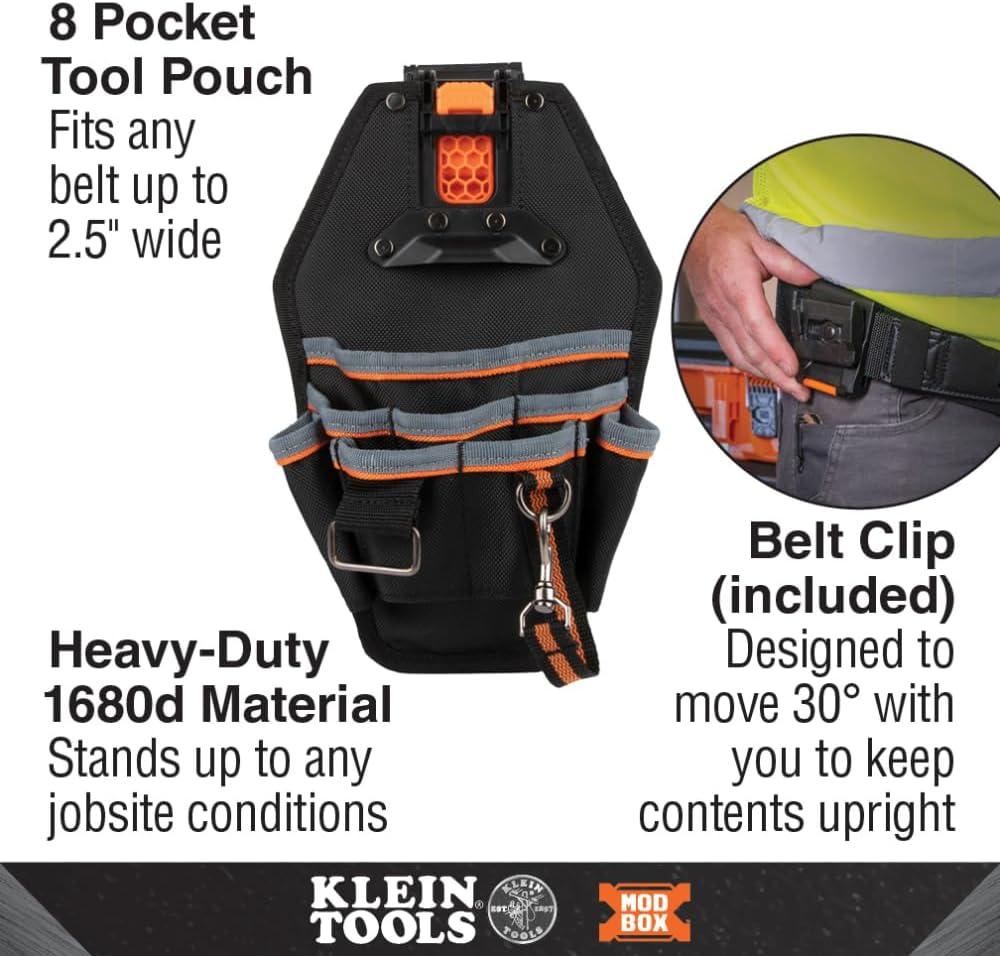Klein Tools MODbox Tool Pouch, Electrician Bag, Quickly Attach and Release from Tool Belts and MODBox Rail System(8-Pocket Pouch)