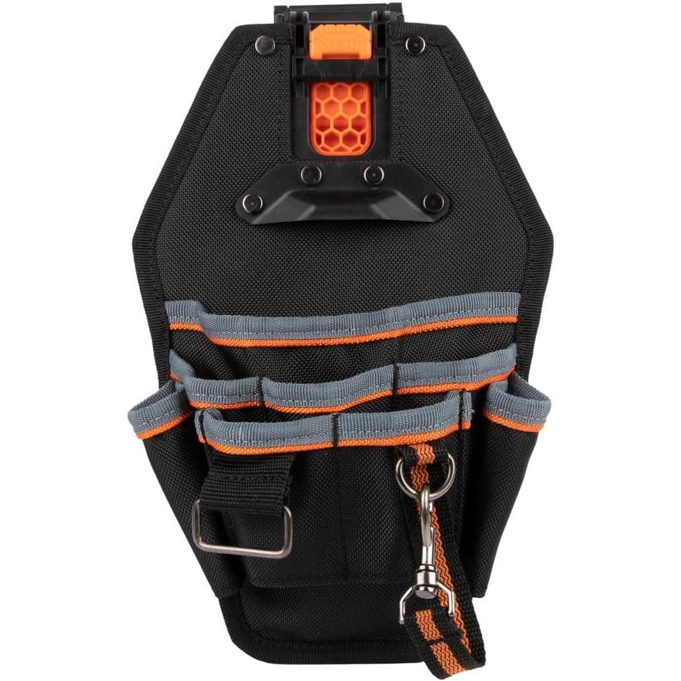 AMPLE STORAGE: 18 pockets for tools, fasteners, and supplies; includes tape loop