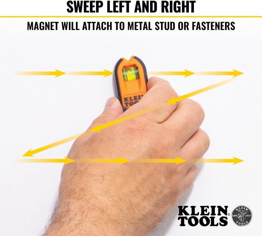 The Compact Magnetic Stud Finder detects metal studs and fasteners within wooden studs, using a powerful Rare-Earth magnet for fast, accurate stud location. It includes felt pads to safeguard drywall and plaster walls. Features such as the center top notch, bottom opening, and bubble vial offer precise marking and alignment. Its compact design makes storage and transport easy; withstanding drops up to 9.9-Foot (3 m). Overmolded housing ensures a comfortable grip. For more than 160 years, Klein Tools has manufactured premium-quality, professional-grade hand tools that deliver the performance, durability and precision needed to get the job done right. Our family of engineers, workers and craftsman continue to put six generations of expertise into every tool we create by using only the highest quality materials, superior workmanship, and keeping manufacturing as close to home as we can. Klein isn't just the name of our company, it's also our family name. And since we're an American company that's family-owned and family-run, you know you can count on us to be here tomorrow. Klein Tools doesn't just make great products, we make great products that stand up to the demands of the professionals who use them every day … Since 1857.