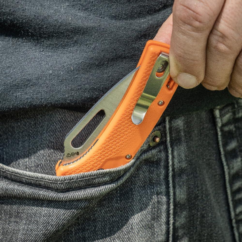 Klein Tools OGK002GNT KTO Resurgence Pocket Knife, D2 Tool Steel Clip Point Blade, Green Handle Utility Knife for Hunting, Hiking(Orange)