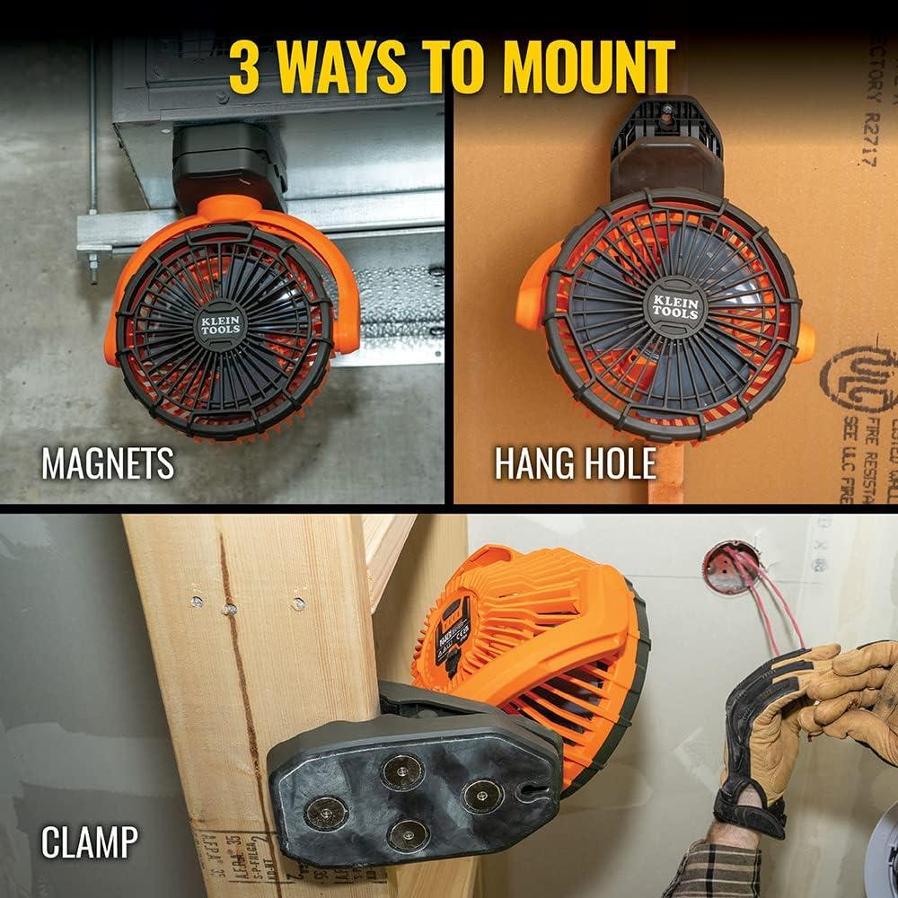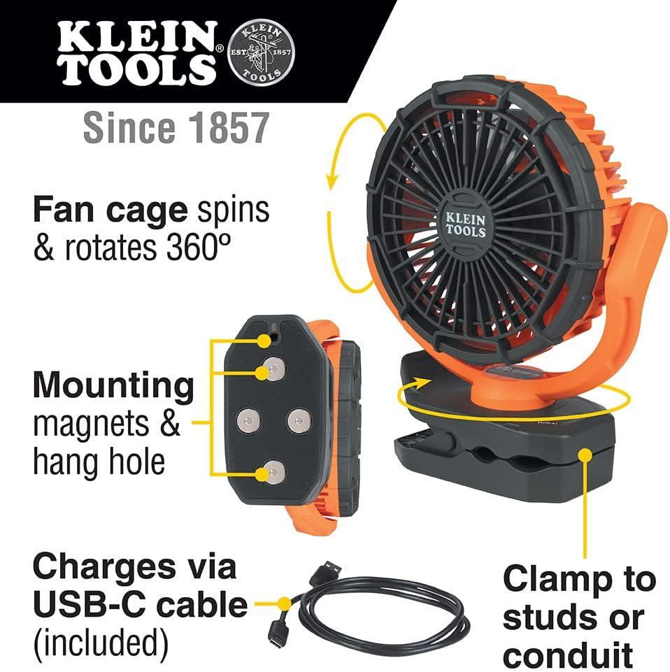 Klein Tools' personal fan has multiple mounting options keeping the fan off the dirty job site floor. Whether you mount it or simply sit the fan on a flat surface, airflow can be aimed in any direction with a fan cage that both rotates and spins 360 degrees. At 10-1/2-Inch tall, this fan is the ideal size to carry every day while producing powerful flow of air when it's hot and stuffy on the job. For more than 160 years, Klein Tools has manufactured premium-quality, professional-grade hand tools that deliver the performance, durability and precision needed to get the job done right. Our family of engineers, workers and craftsman continue to put six generations of expertise into every tool we create by using only the highest quality materials, superior workmanship, and keeping manufacturing as close to home as we can. Klein isn't just the name of our company, it's also our family name. And since we're an American company that's family-owned and family-run, you know you can count on us to be here tomorrow. Klein Tools doesn't just make great products, we make great products that stand up to the demands of the professionals who use them every day … Since 1857.
