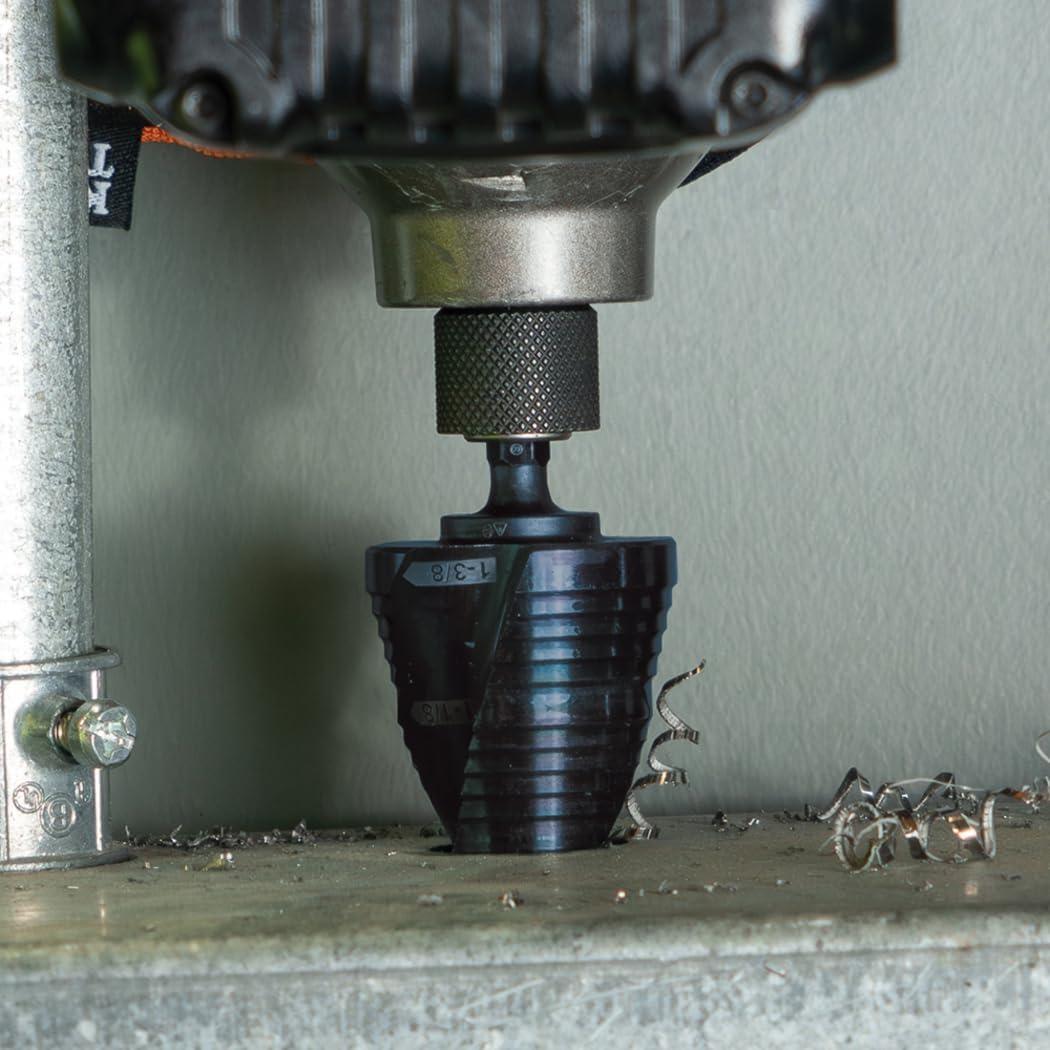 SET CONTAINS 3 STEP BITS: 7/8-Inch, 1-1/8-Inch, and 1-3/8-Inch sizes for creating hole cutouts in panels and j-boxes to accommodate most commonly used 1/2-Inch, 3/4-Inch, and 1-Inch conduit